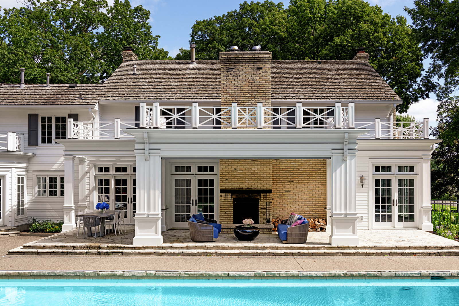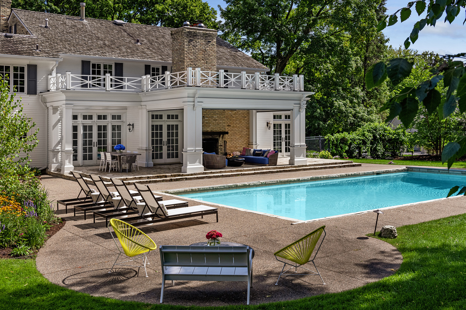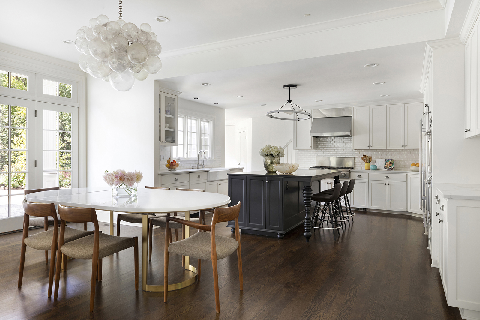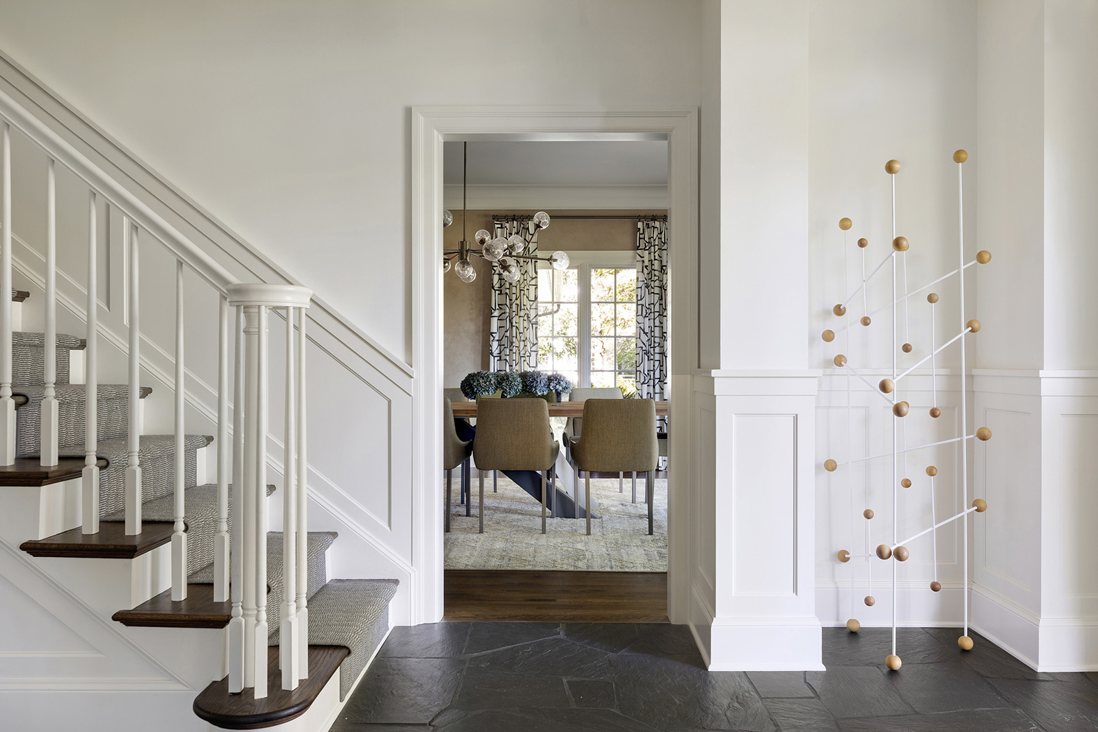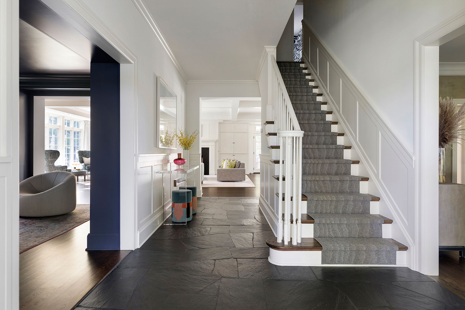 Mid-century modern details complement the classic Colonial architecture in this freshly renovated home.