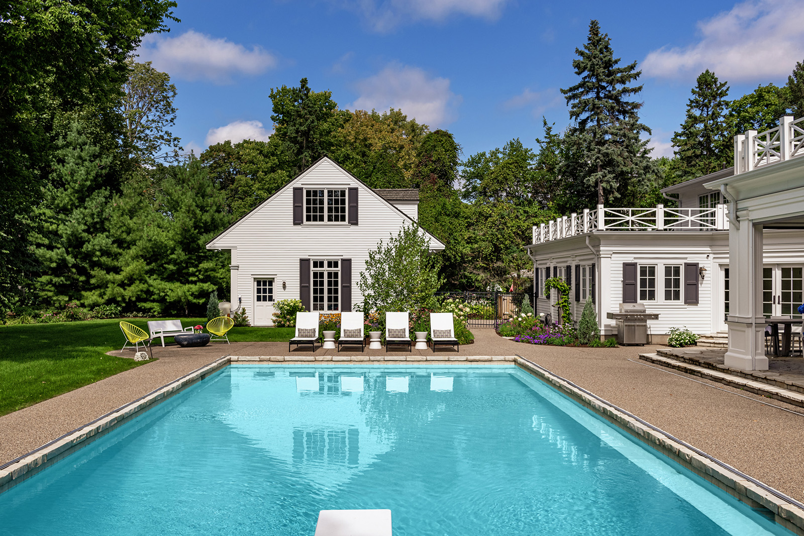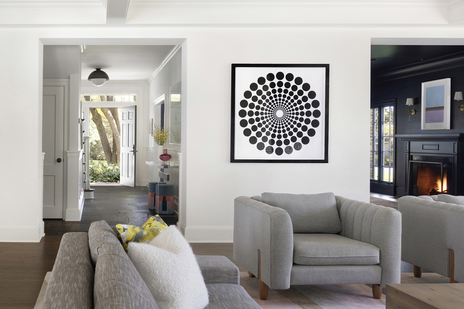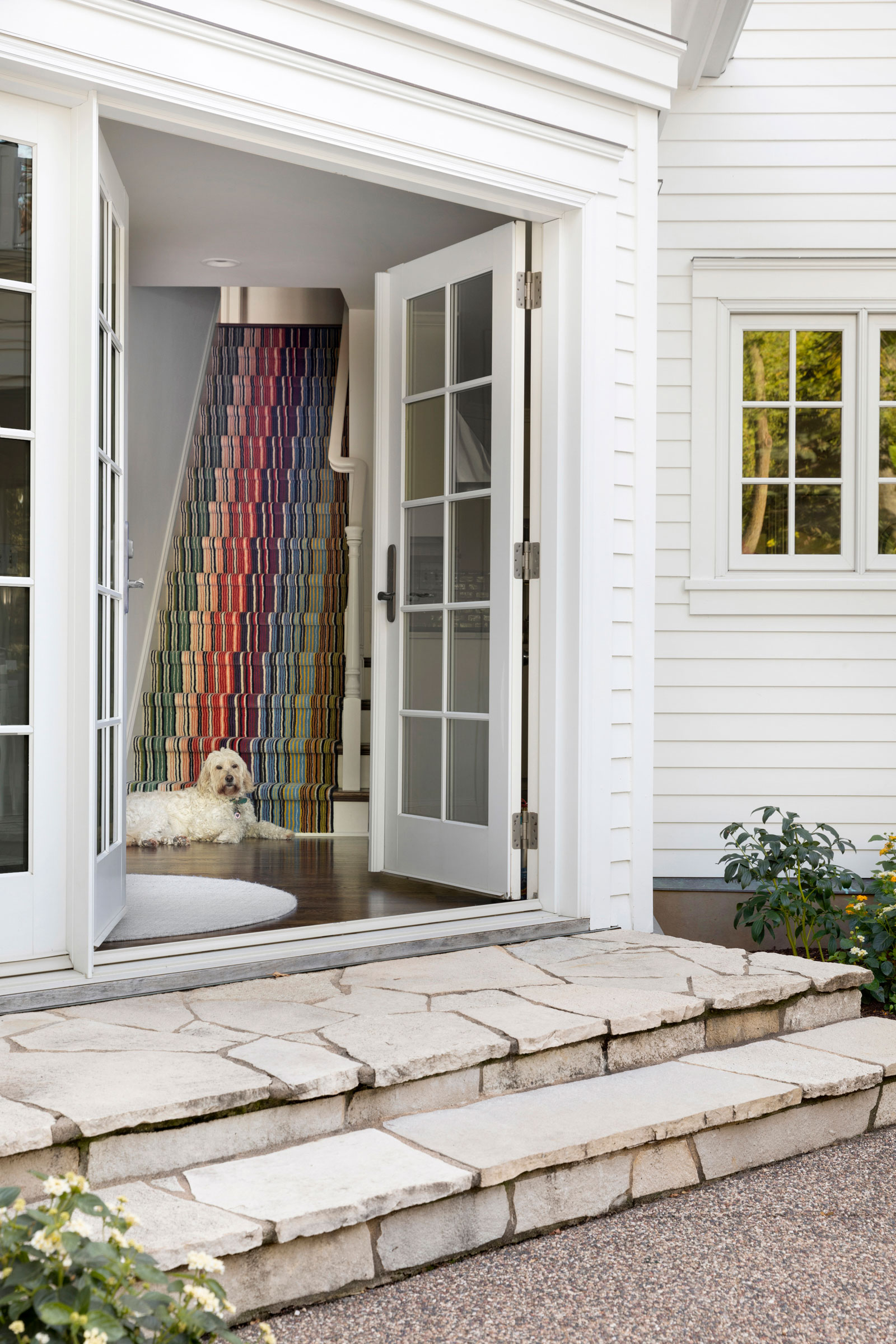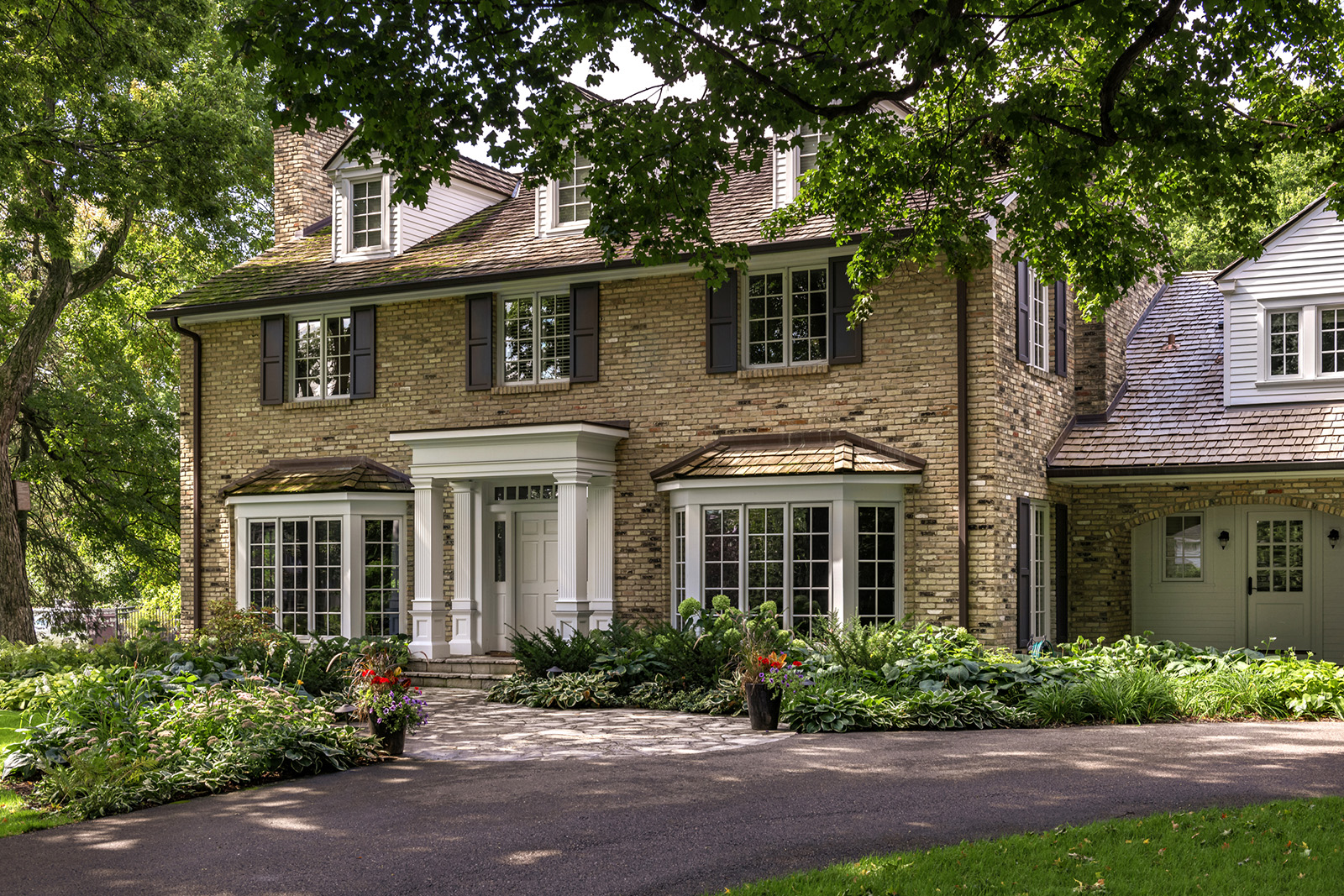 Mid-century modern details complement the classic Colonial architecture in this freshly renovated home.