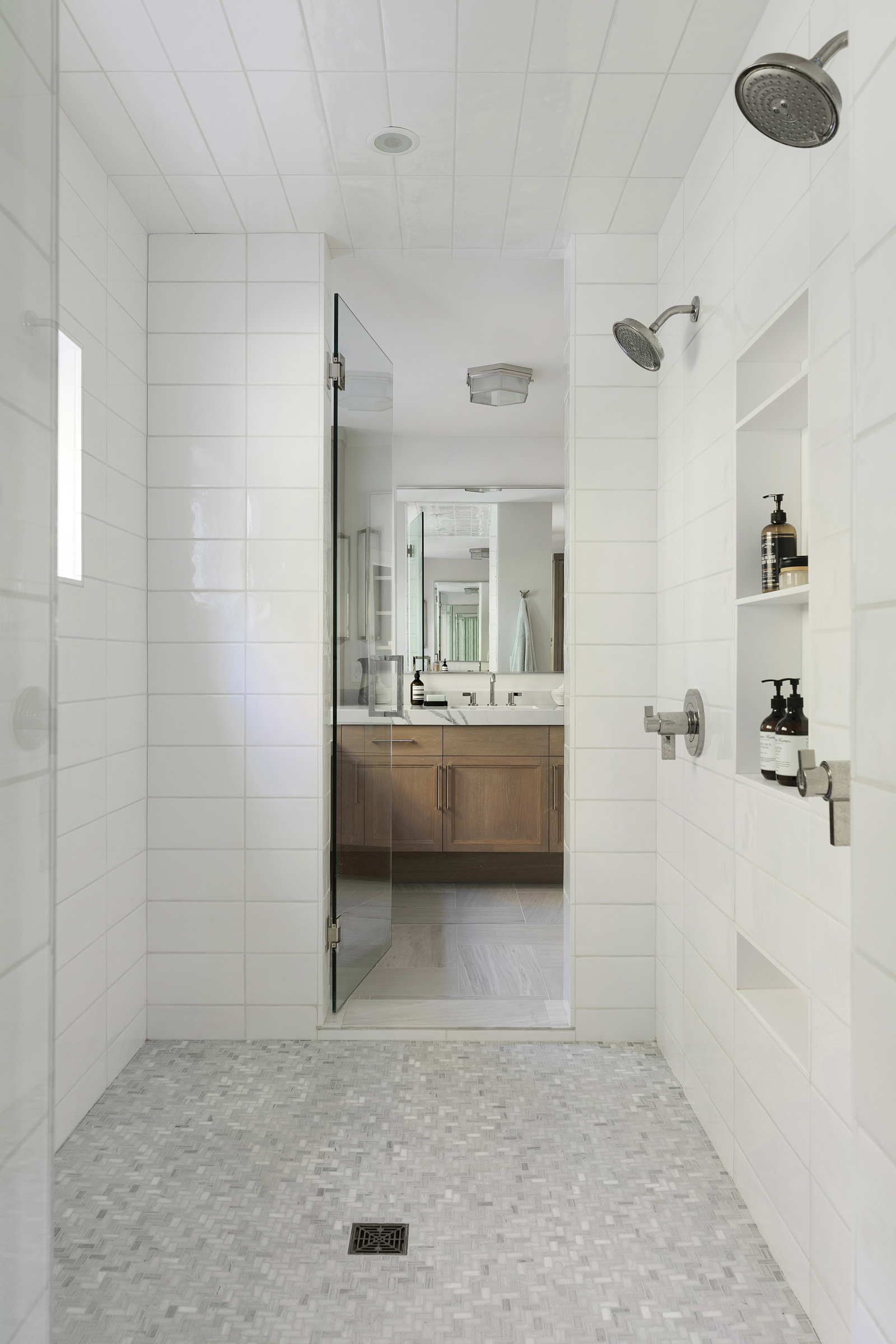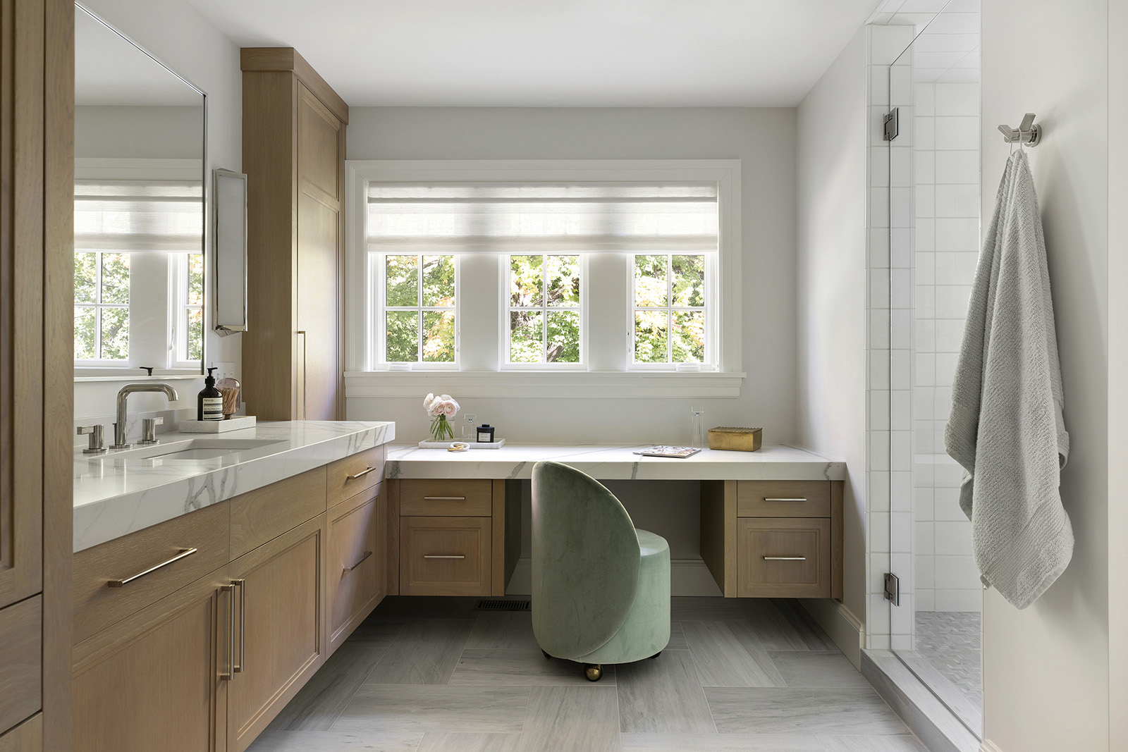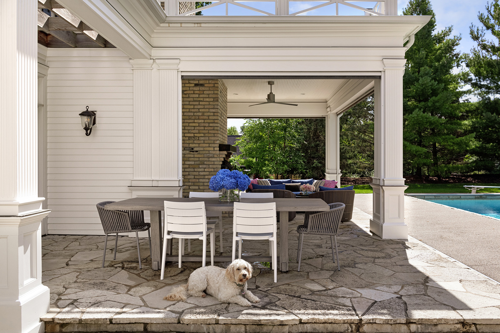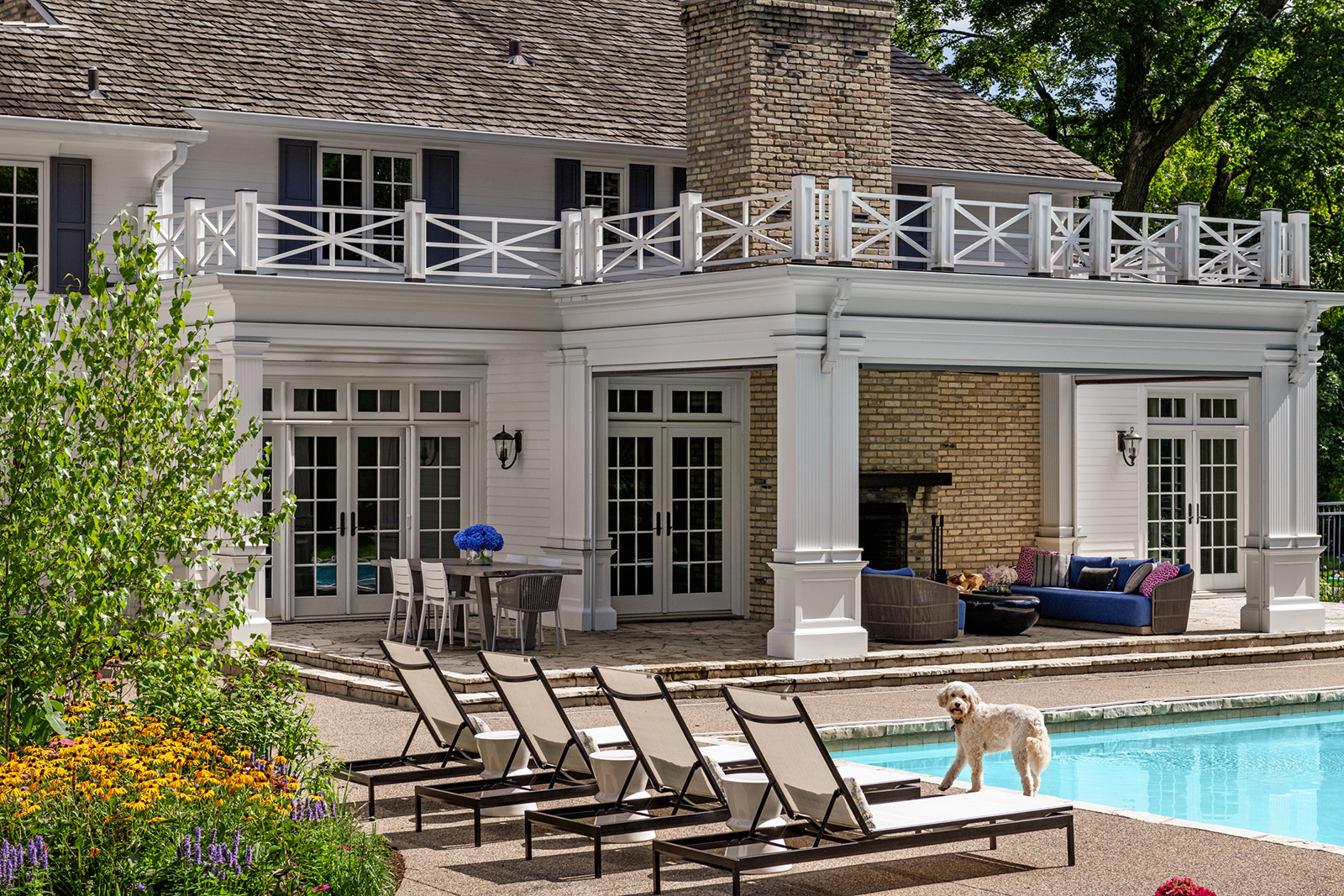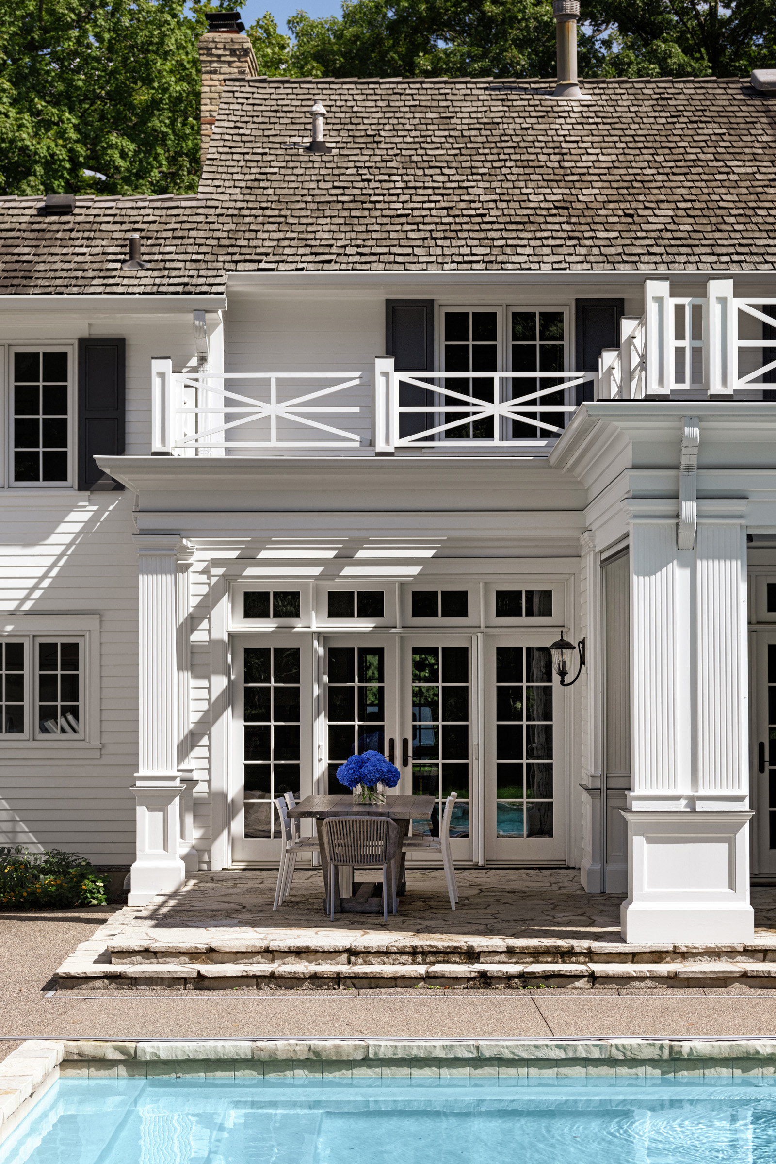 Mid-century modern details complement the classic Colonial architecture in this freshly renovated home.