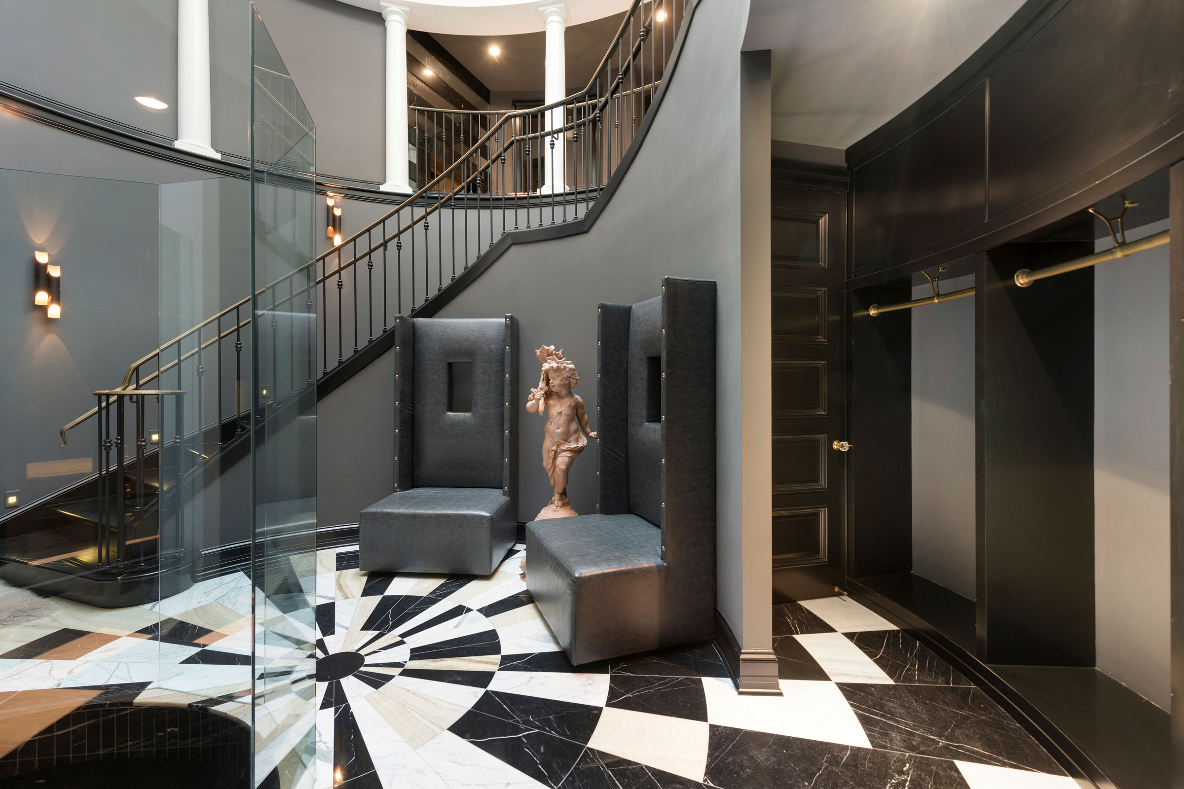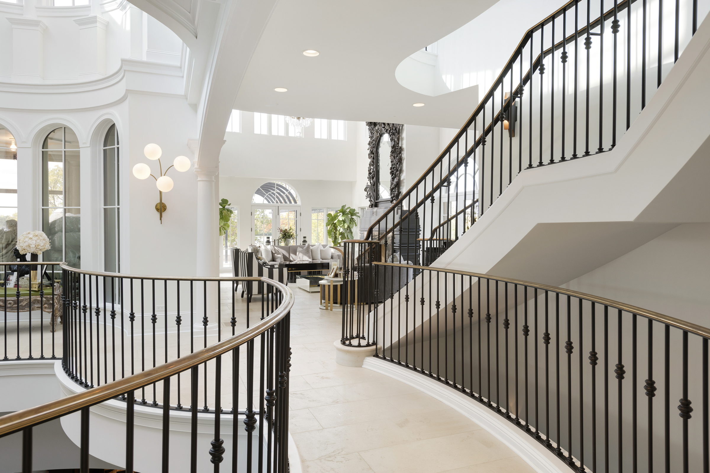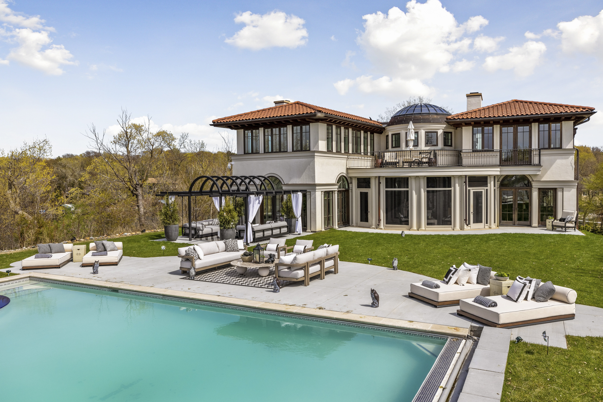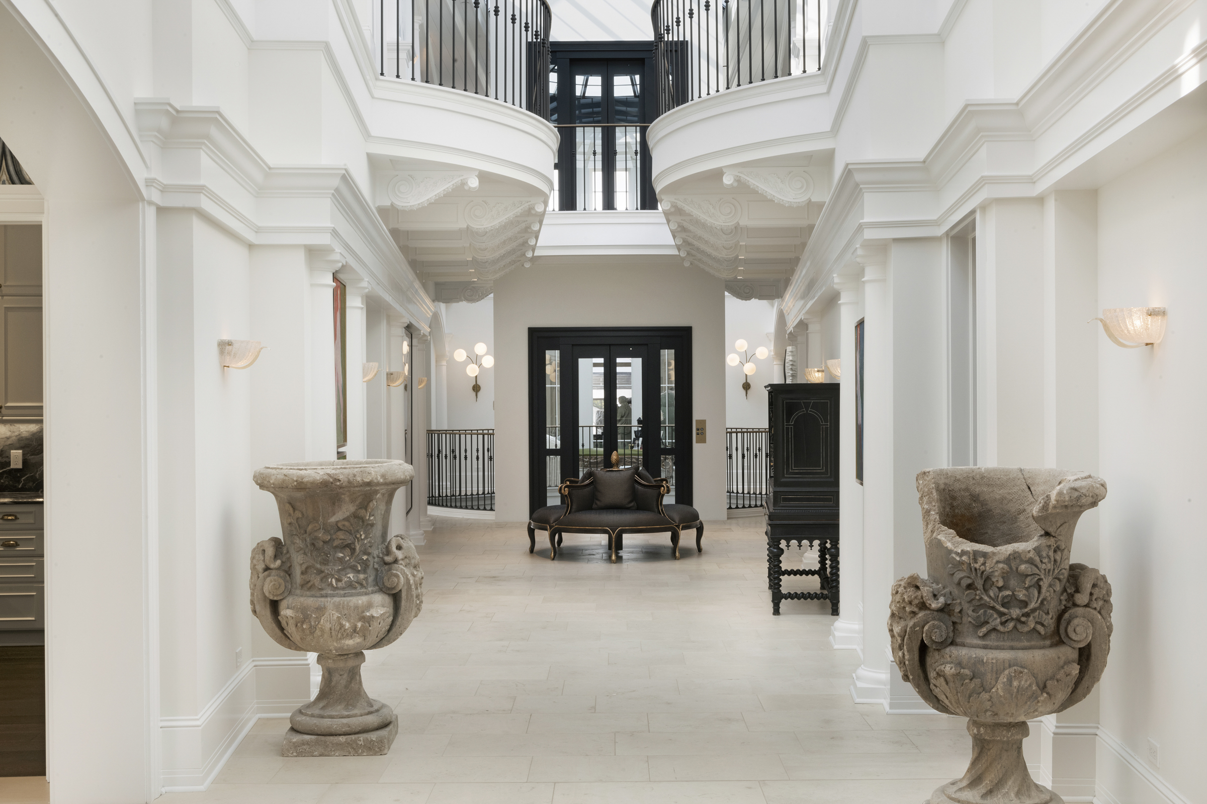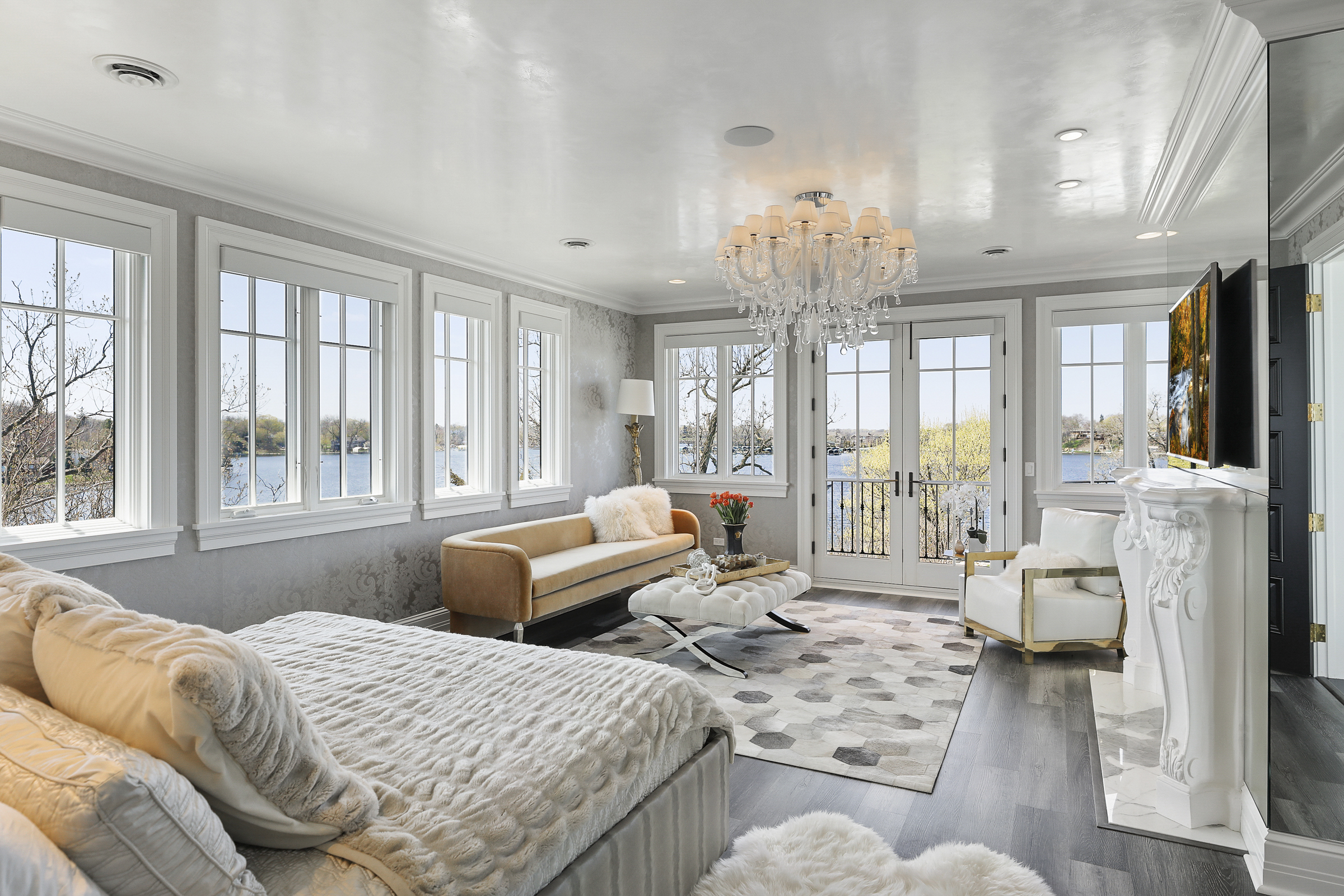 This stunning home was built on a private island and features over 1,000 feet of lakeshore and over 19,000 square feet of interior space.